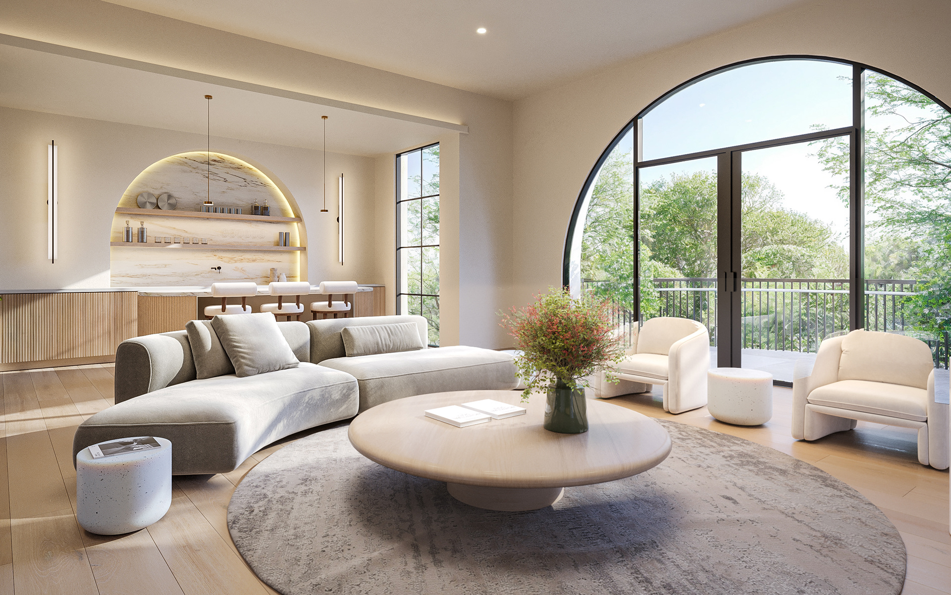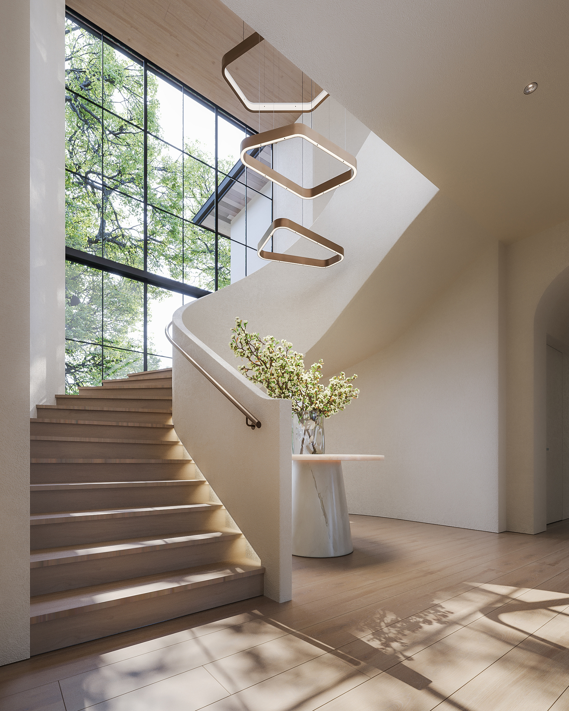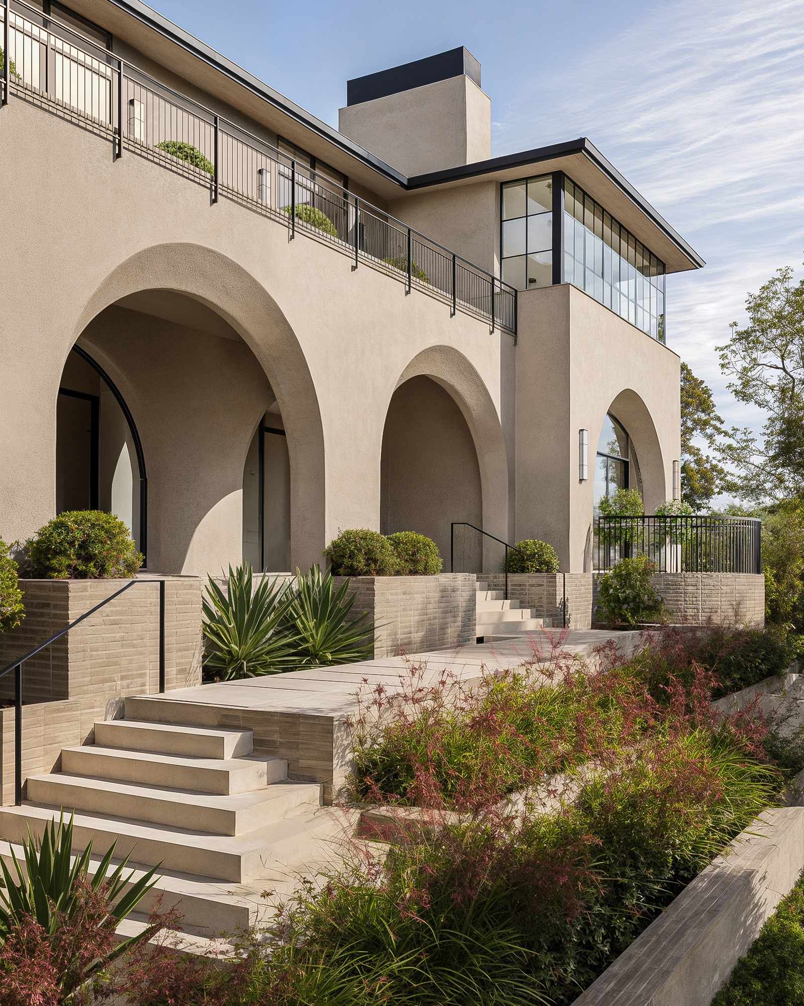 Designed for city views and entertainment, this residence in Austin, TX was carefully conceived with a timeless sense of materials and form. Steel windows and doors line the front and rear elevations giving an impression of quality and ageless style. Inspired by Mediterranean architecture, the design cross-pollinates aesthetics into a fresh stylistic approach. The layout responds to this same ethos and the arrangement translates well to family living, large parties, or small gatherings.